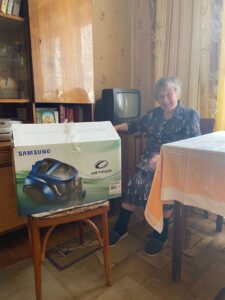 От Георгиевского Сестричества мы сделали подарок — пылесос. Недавно сломался старенький пылесос и Вера Ивановна очень огорчилась, так всегда поддерживает чистоту и порядок в квартире. Так что нашему подарку очень обрадовалась !