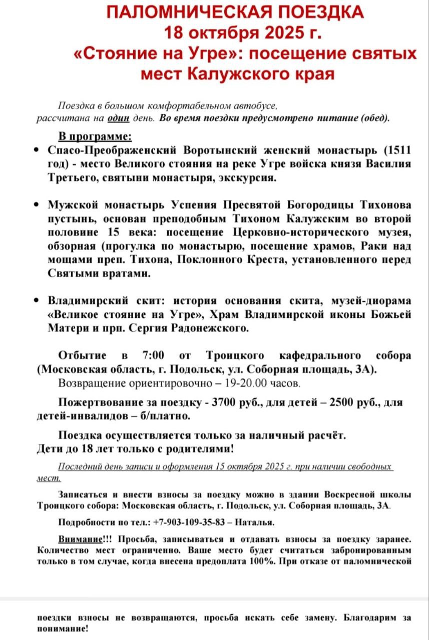Расписание Богослужений