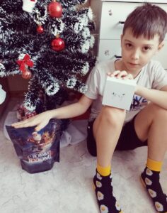 Настенька из Сыктывкара получила ортопедическую подушку ; Камиль из Крыма пушистую пижаму и сладкий подарок Артем из Вологды беспроводные наушники и сладкий подарок. Трое братьев из многодетной семьи в из-под г.Ливны получили сладкие подарки и по просьбе их мамы Анастасии наша добрая фея Татьяна подарила семье сепаратор, для того чтобы из молока (в семье козочка) делать творог и масло — очень нужный подарок, чтобы в деревне прокормить семью.
