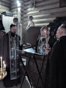 Душе́ моя́, душе́ моя́, воста́ни, что спи́ши? Коне́ц приближа́ется, и и́маши смути́тися. Воспряни́ убо, да пощади́т тя Христо́с Бог, везде́ сый и вся исполня́яй.
