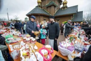 в Великую Субботу во время освящения пасхальной снеди.