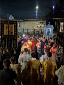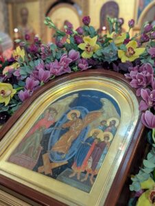 Христос воскре́се из ме́ртвых, сме́ртию смерть попра́в, и су́щим во гробе́х живот дарова́в.